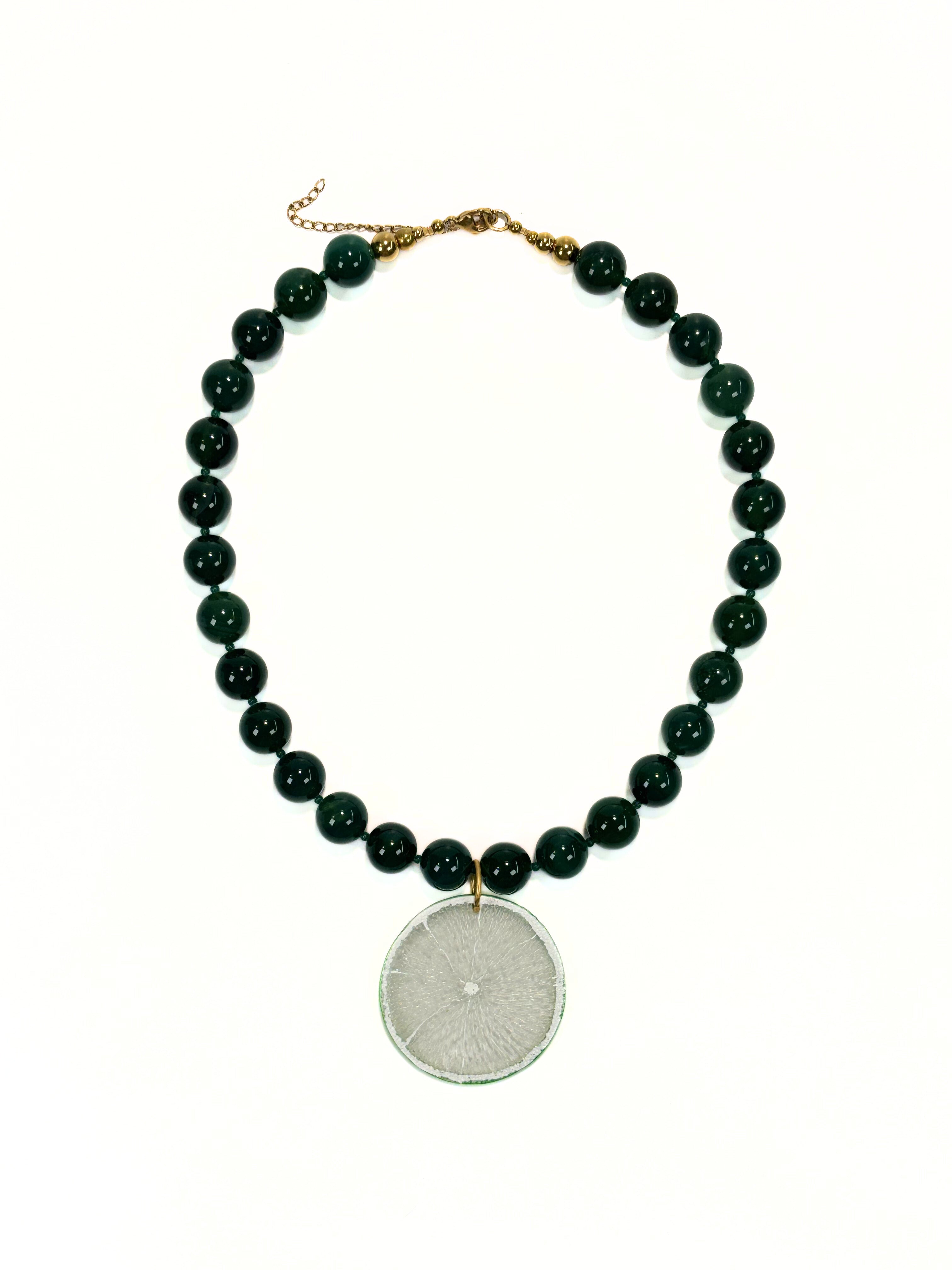 Precio regular $ 820.00Precio en oferta $ 820.00 Precio regularPrecio unitario / porHecho con chips naturales de jaspe en tonos tierra y un dije verde profundo jade que roba miradas. Minimal, elegante y con vibra orgánica.