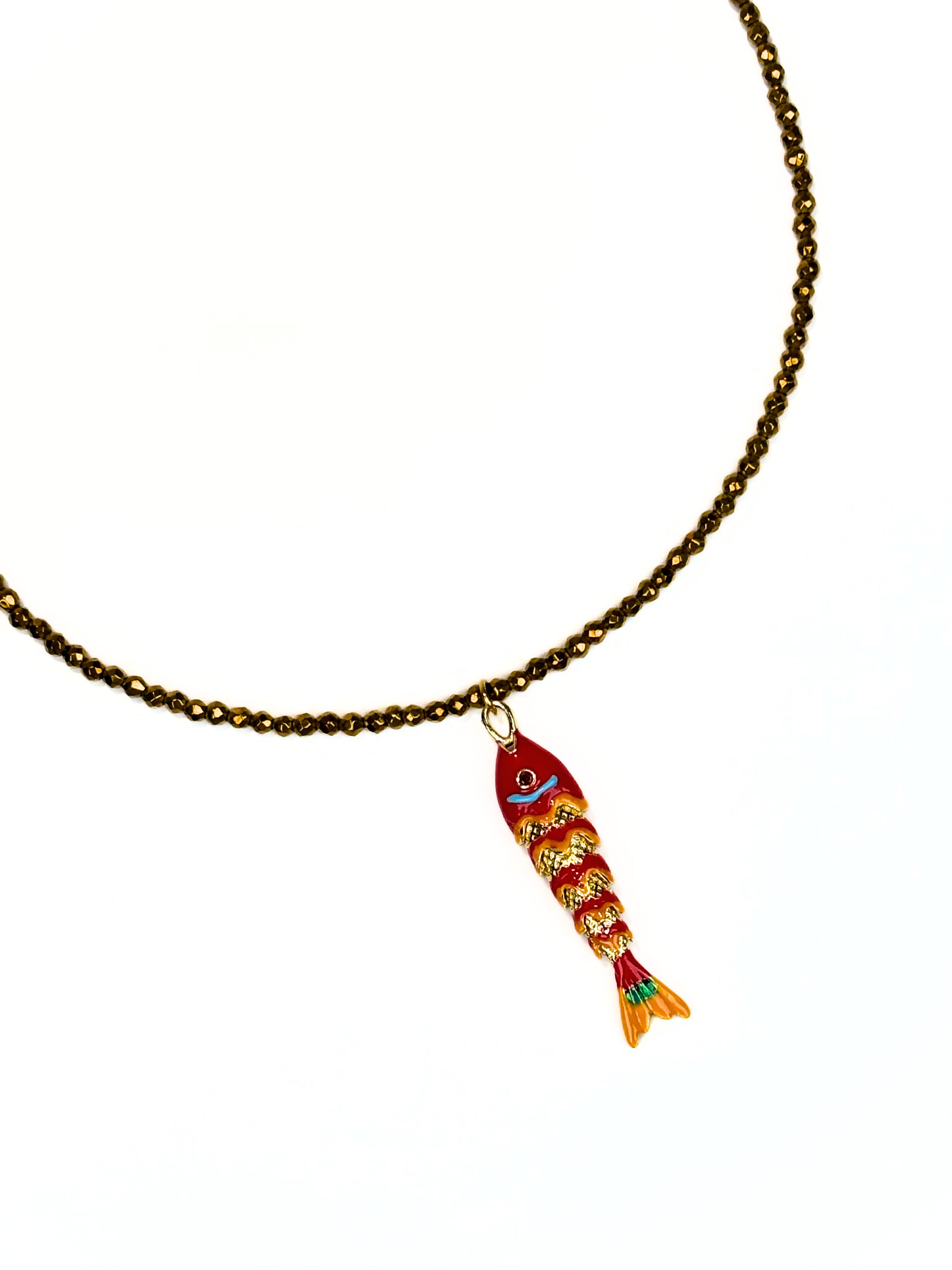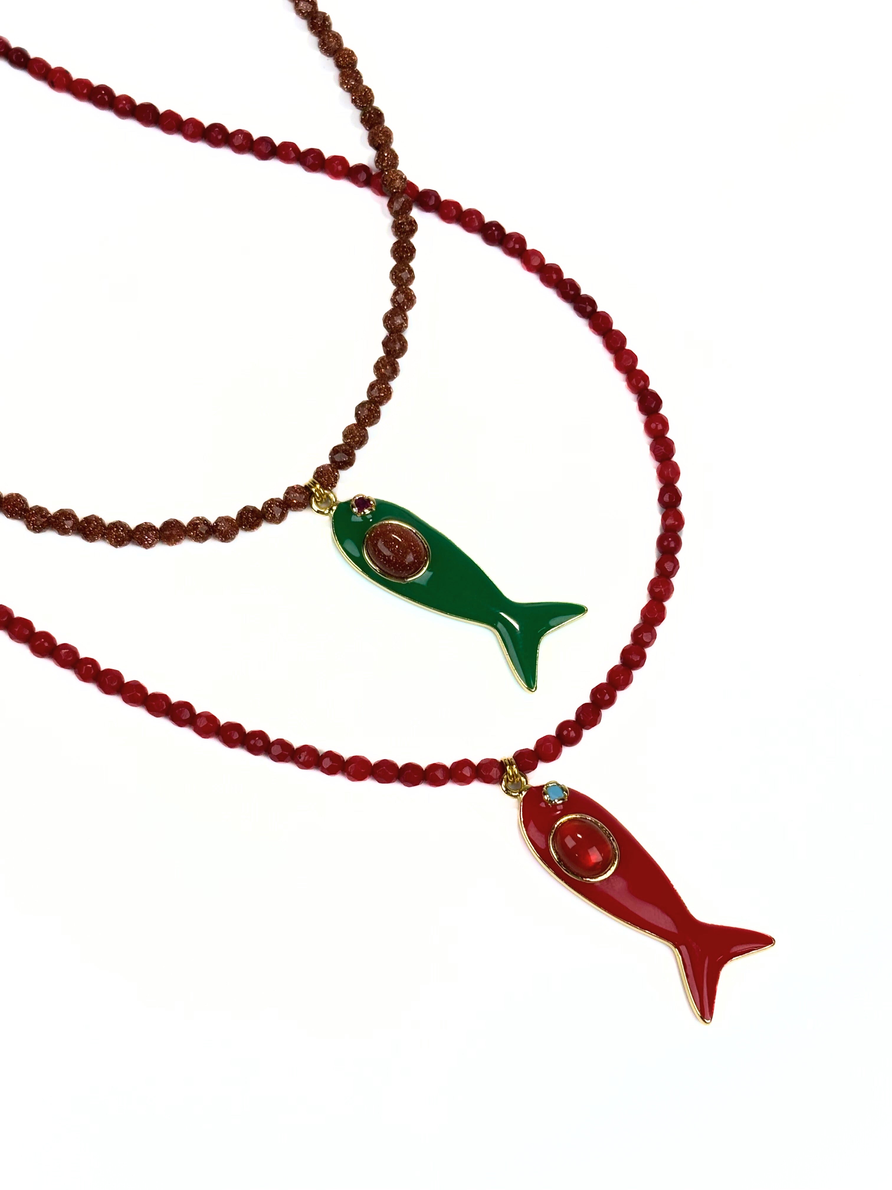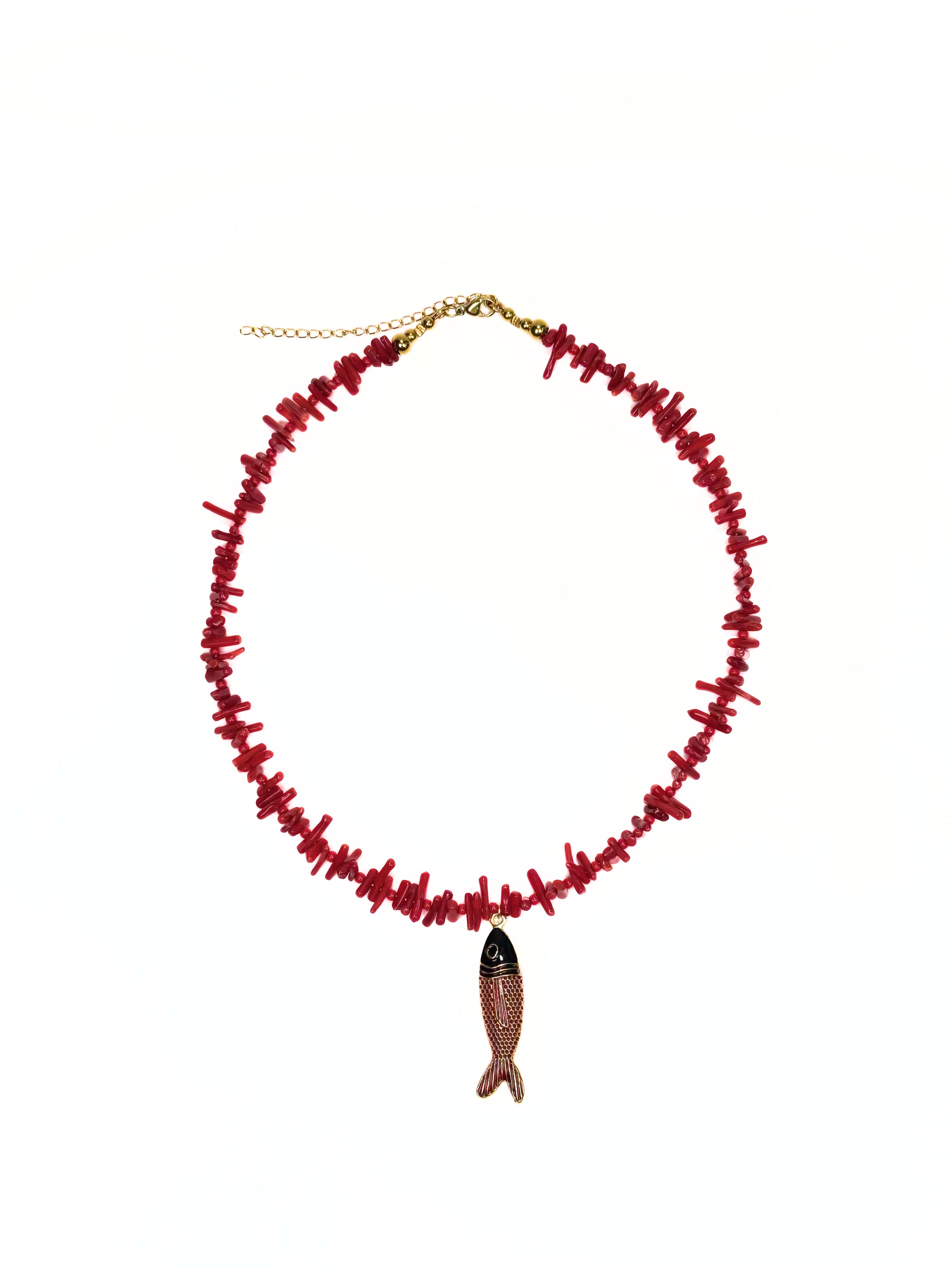 Precio regular $ 740.00Precio en oferta $ 740.00 Precio regularPrecio unitario / porUna joya que encarna la energía del mar y la pasión del fuego.El collar Pez de Fuego está elaborado con fragmentos naturales de coral rojo, símbolo...